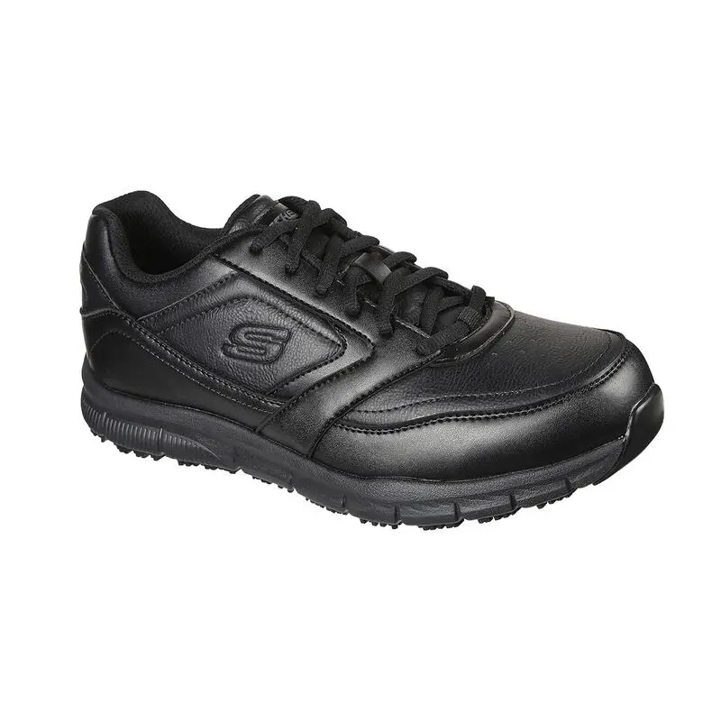 Compra en Decathlon Zapatillas Caminar Hombre SKECHERS Work Relaxe Fit Nampa Sr Negro Con un diseño exterior textil de la mejor calidad, estas zapatillas cuentan con una plantilla de Memory Foam acolchada y amoldable al pie, buena sujeción en el empeine y suela de goma antideslizante.